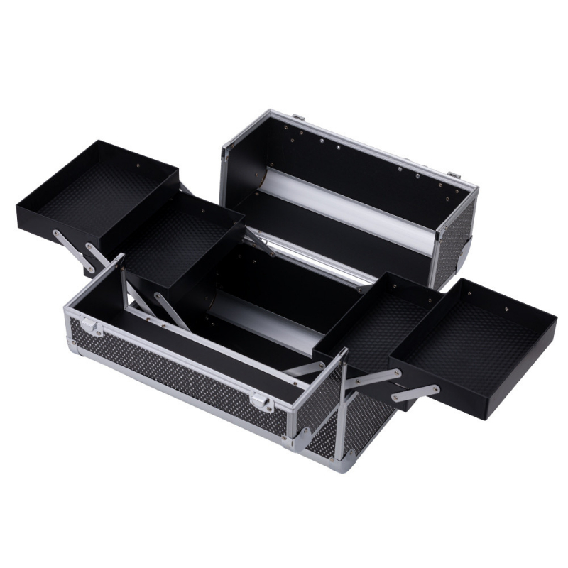Snygg aluminium sminkväska i klassisk design som är utvecklad för förvaring av en UV/LED nagellampa eller elektrisk nagelfil. Väskan är utrustad med två lås och har flera fack i vilka får plats föremål som smink, nagelvårdsprodukter samt övriga tillbehör. Den perfekta lösningen för skönhetsspecialister som arbetar på resande fot eller erbjuder kundbesök.