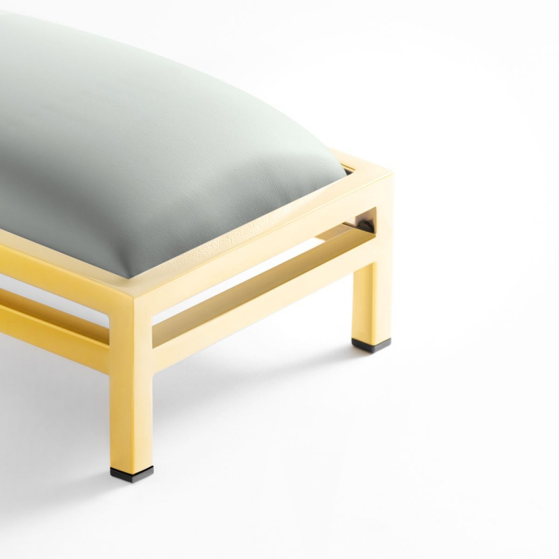 Snygg handunderlag MOMO M-10 för professionell nagelvård. Armstödet består av en guldfärgad metallram och en bekväm kudde i grått konstläder med skumfyllning. Underlaget underlättar arbetet och ökar komforten för kunden.