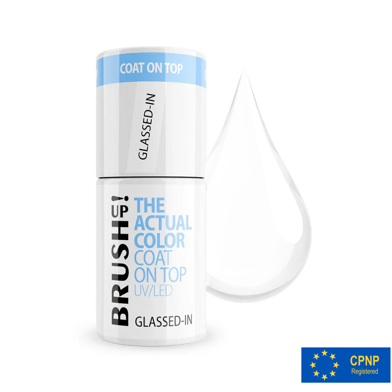 The Actual Color top coat används som det avslutande lagret för att skydda nageldesignen, förlänga hållbarheten och ge en glasliknande yta. Glassed-in top har även en vacker extra effekt som framträder under ultraviolett ljus, där den lyser upp med en unik och iögonfallande glans. Top coat är utan klibbigt dispersionslager (NO WIPE), vilket betyder att ingen rengöring med cleanser behövs. Perfekt vid arbete med gel, gellack, akryl och polygel.