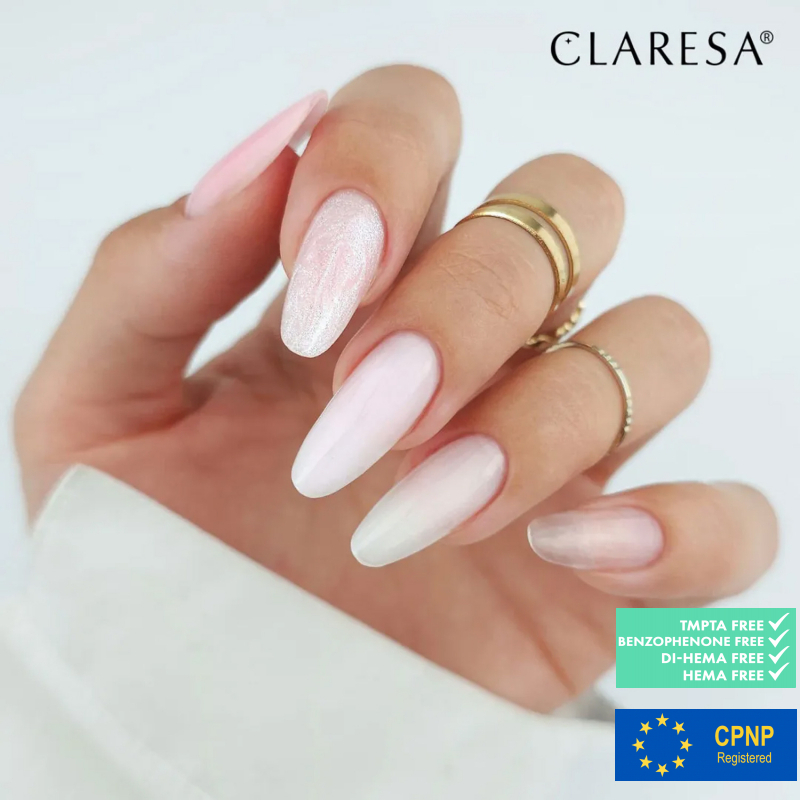 Builder UV gel från Claresa med en ny, HEMA-fri, tixotropisk och HARD trefas-formula för modellering, förlängning och förstärkning av naglar. Gelen är HEMA-fri för att minska risken för hudirritation och allergiska reaktioner. Den tixotropiska konsistensen blir tunnare vid beröring för smidig applicering men återgår snabbt till sin tjockare form, vilket förhindrar att den rinner mot nagelbanden. Med låg härdningstemperatur minimeras brännande känsla i lampan. Gelen fungerar utmärkt på naturliga naglar, tippar, schabloner och dual forms.