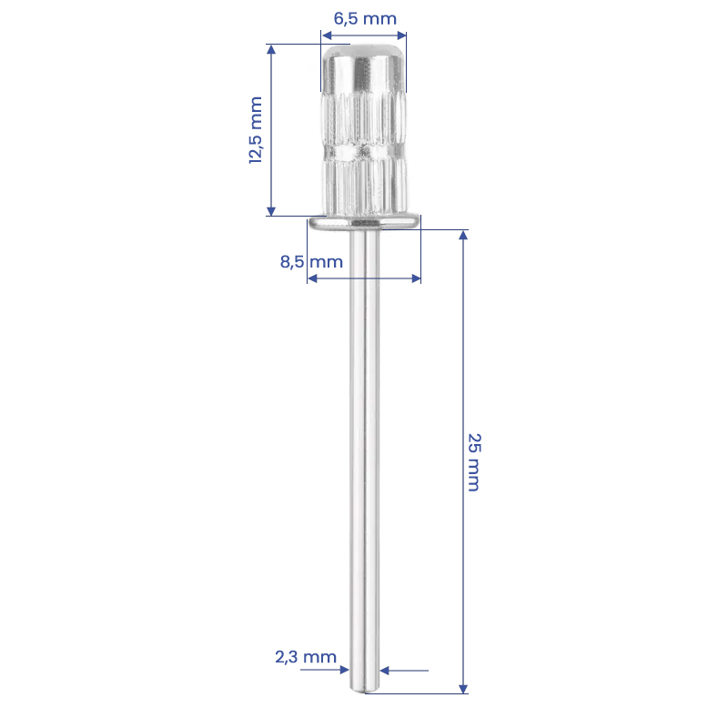 Stiftdiameter: 3/32" (ca 2,35 mm som är standardstorlek för de flesta elektriska nagelfilar och fotfilar)
