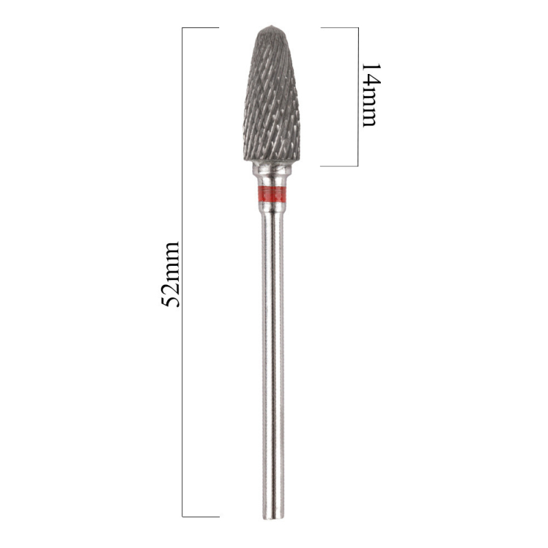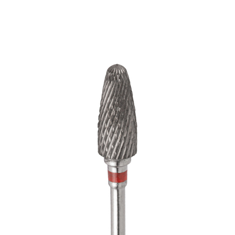 Flamformad bit / slip / fräs i rostfritt stål med karbidbeläggning för elektrisk nagelfil / nagelslip maskin för slipning av förhårdnader, hornhinna och starka gel, akryl och polygel. Passar perfekt för användning inom pedikyr och manikyr. Går enkelt att rengöra med vatten.