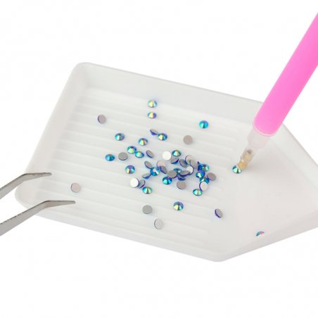 Praktisk och smart set för applicering av strasstenar och dekorationer på naglar. Innehåller applikator, speciellt vax, pincett och bricka. För professionellt och hemmabruk.