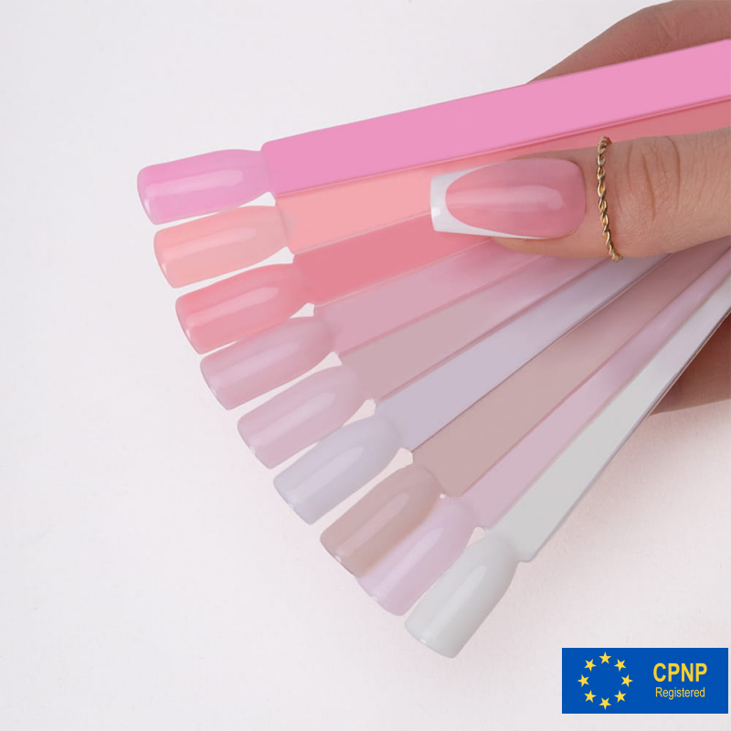 Delicate French nr. 303:en mycket ljus rosa nyans med ett naturligt och elegant uttryck. Ger ett klassiskt och sofistikerat intryck och passar lika bra till fransk manikyr som till hel täckning