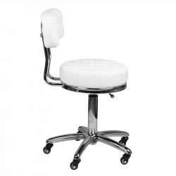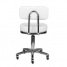 Höj och sänkbar arbetspall på hjul som är perfekt till skönhetssalong, klinik eller kontor. Arbetsstolen levereras i en ergonomisk design med skön sits och ryggstöd för maximal komfort. Klädsel är tillverkad i vitt antibakteriellt konstläder av hög kvalitet som är lätt att rengöra.
