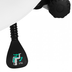 Professionell sadelstol utrustad med hjul, justerbar höjd, lutning samt ryggstöd. Arbetsstolens klädsel är tillverkad i vitt antibakteriellt konstläder av hög kvalitet som är lätt att rengöra, vilket är perfekt till skönhetssalong, klinik och kontor.