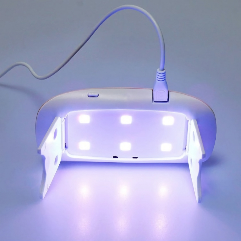 Liten och smidig UV LED lampa SUN MINI med 6 lysdioder och en total maximal effekt på 6W. Lampan har en USB-kontakt (sladd ingår) och går att driva med telefonadapter, dator eller powerbank som har en USB 2.0 / 3.0 port. Perfekt att ta med sig på resan. Passar perfekt till gele, gellack och polygel naglar och tånaglar.